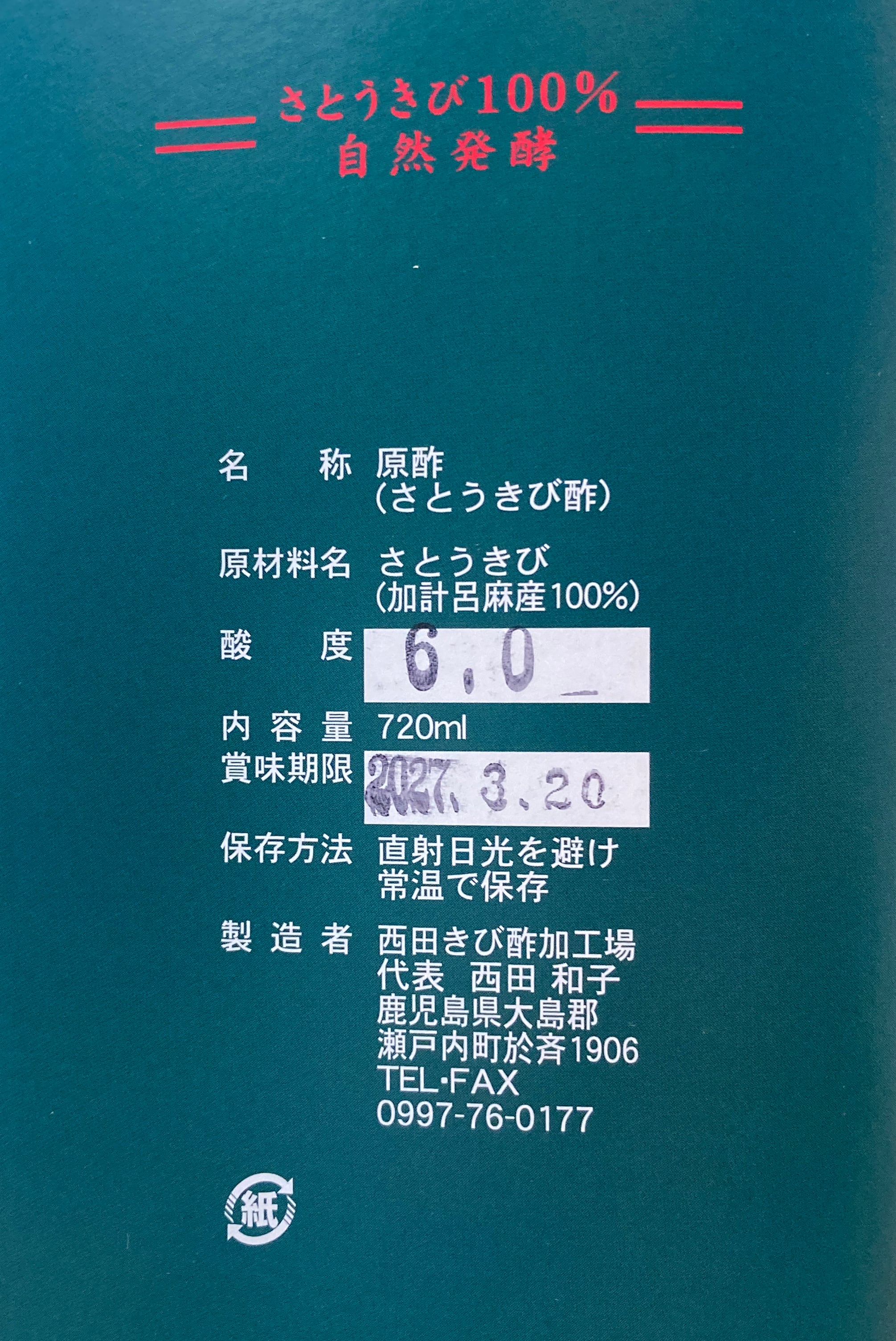 西田製糖 原酢 720ml